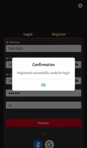 After completing the form, review the account registration details. Once you’re ready, click on “Register.” The system will instantly notify you that you have successfully registered for RUBY88.